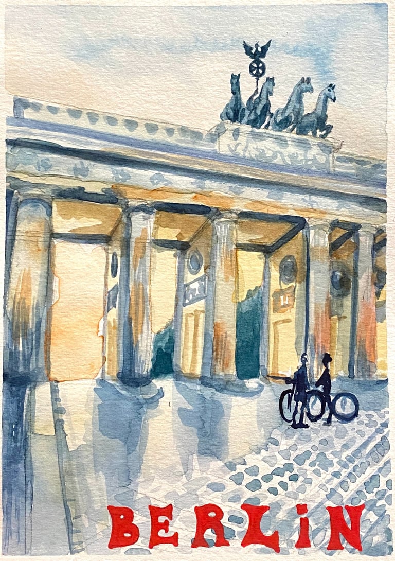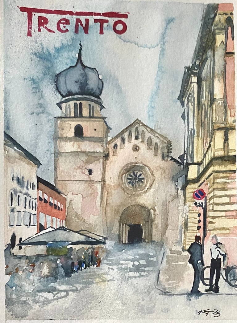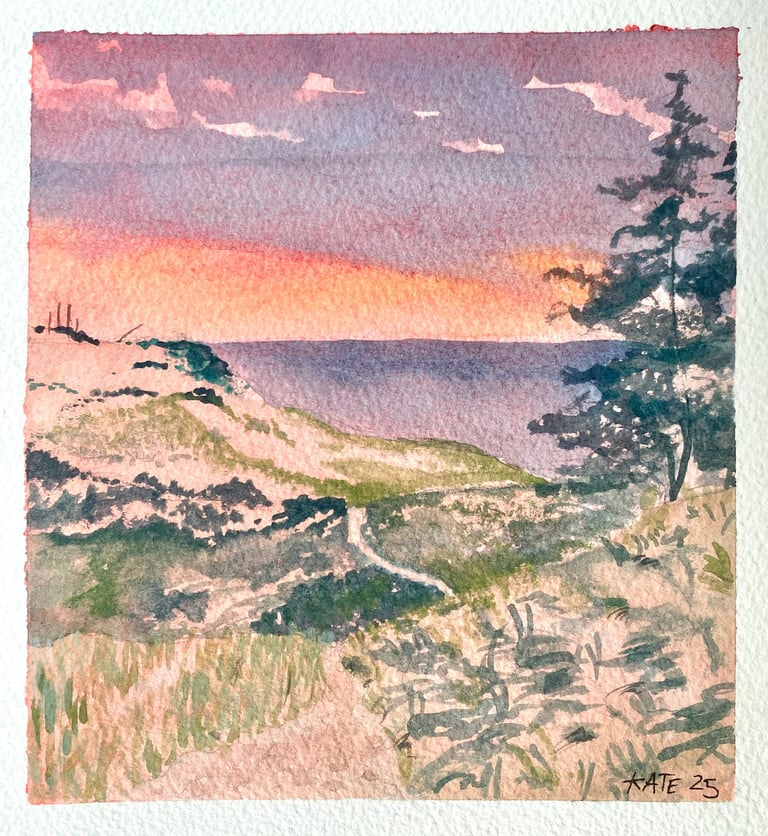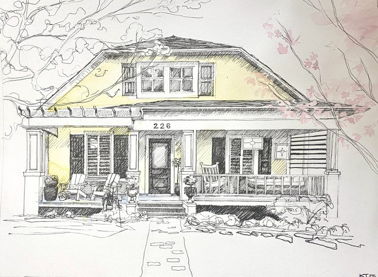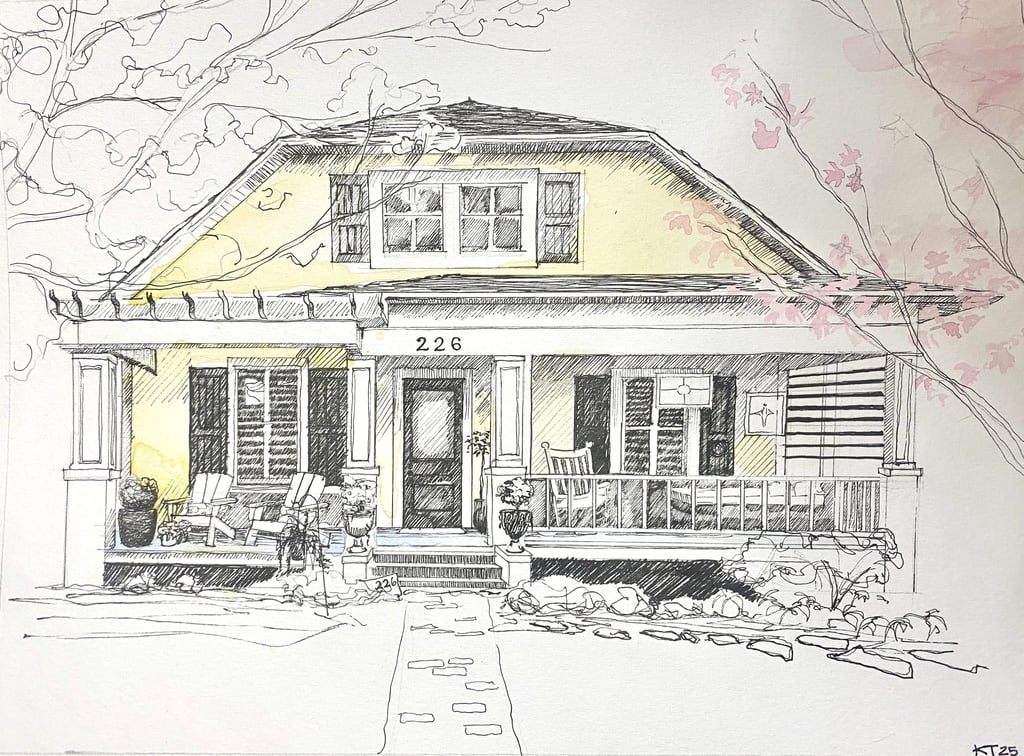 Pen drawing with watercolor accents. 11 inches x 14 inches. 2025.